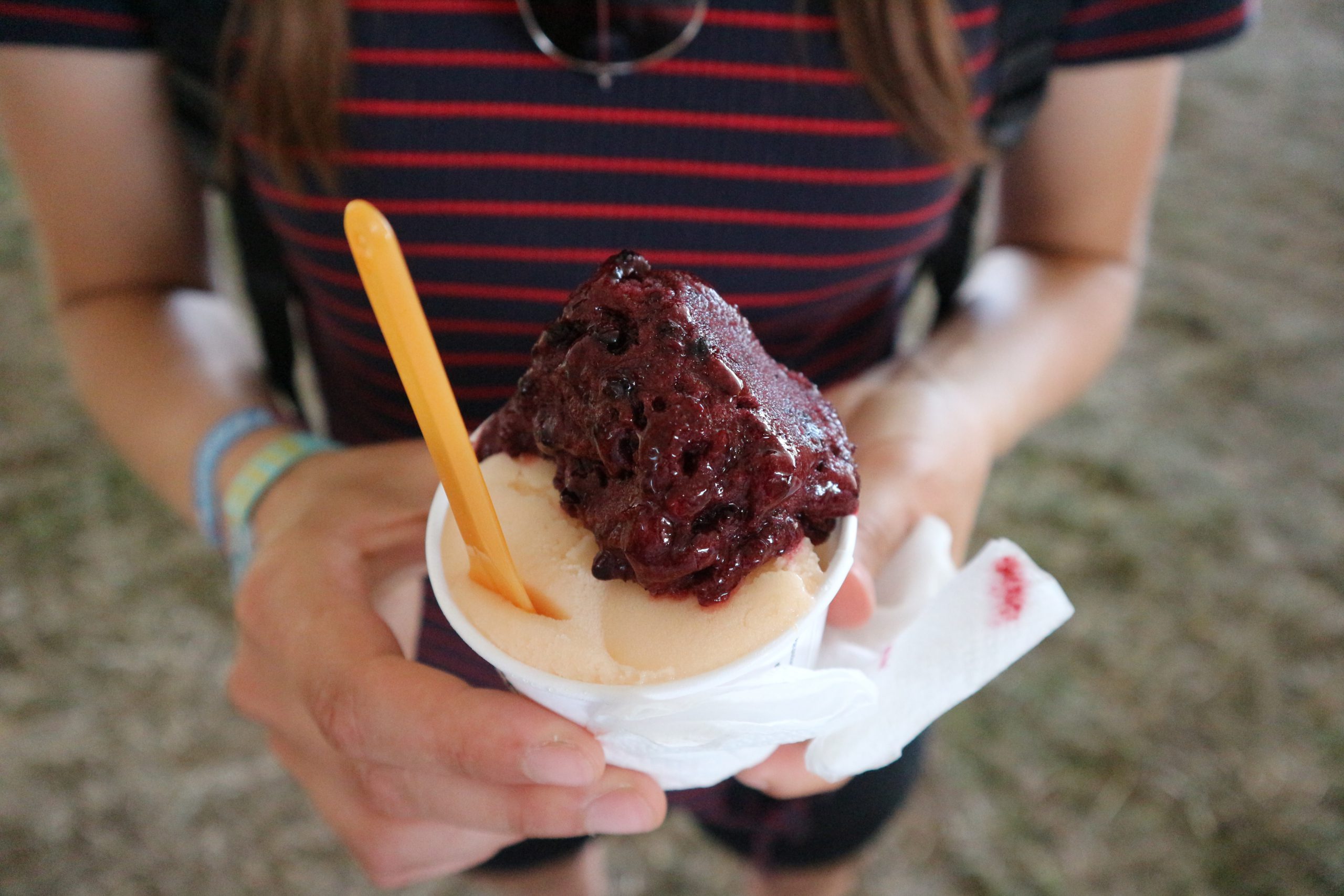 Bij Electric Castle kan je zelf koken, want er is gewoon een Lidl op het festival. Niks idioot dure friet en angus hamburgers. Gewoon naar de supermarkt en op de bbq’s die ernaast staan (en 12 uur per dag branden) je eigen maaltijd bereiden. Wanneer je geen zin hebt om zelf te koken kan je er ook goed eten halen. In Roemenië hadden ze zelfs Moldavisch fastfood! De meeste eetkraampjes zijn vooruitstrevend ook al is dit niet altijd een succes. Zo is dit braam basilicumijs niet te vreten. Een 7 voor het idee, 3 voor de uitvoering.